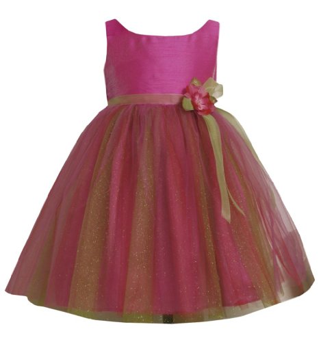 Bonnie Jean Toddlers 2T-4T Fuchsia-Pink and Green Glitter Tulle Shantung Dress
