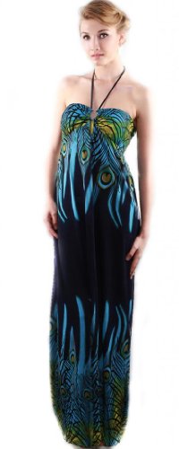 Women's Peacock Print Long Maxi Halter Dress, More Colors Available