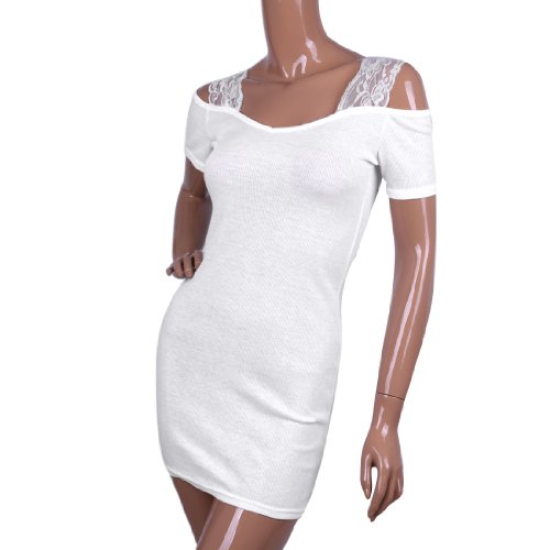 Ekberg Ladies V Neck Cold Shoulder Lace Splice Straps Skinny Mini Dress