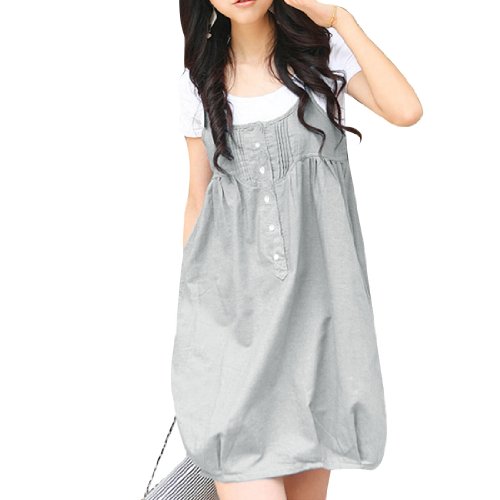 Ekberg Pregnant Women Faux Leather Straps Jummer Dress w Shirt Light Gray S