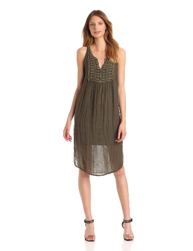 Michael Stars Women's Cosette Textured Linen Split Neck Crochet Midi