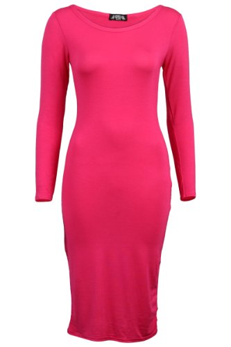 82M Womens Long Sleeved Jersey Ladies Stretch Bodycon Long Midi Dress