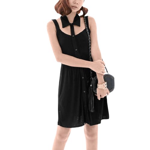 Allegra K Ladies Single Breasted Casual Sleeveless Fashional Mini Dress Black XS