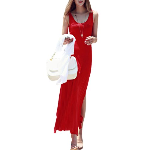 Allegra K Women Summer Europe Wind Sexy Split Long Summer Elegant Dress Red XS