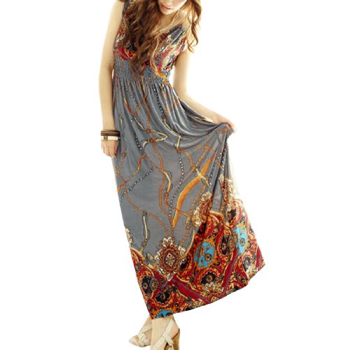 Ekberg Ladies Elastic Waist Novelty Prints Padded Bust Summer Long Dress Gray Xs