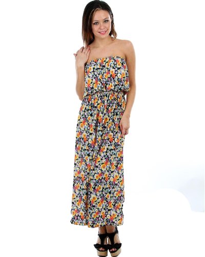 G2 Fashion Square Women's Floral Strapless Elastic Waist Maxi Dress