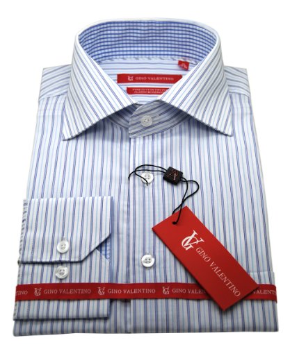 Gino Valentino Mens Striped Dress Shirt GiftBox Cotton Spread Collar Barrel Cuff