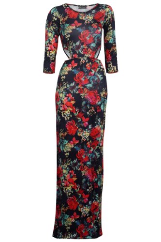 My1stWish Womens 88T Cut Out Side Ladies 3/4 Length Sleeve Party Long Maxi Dress