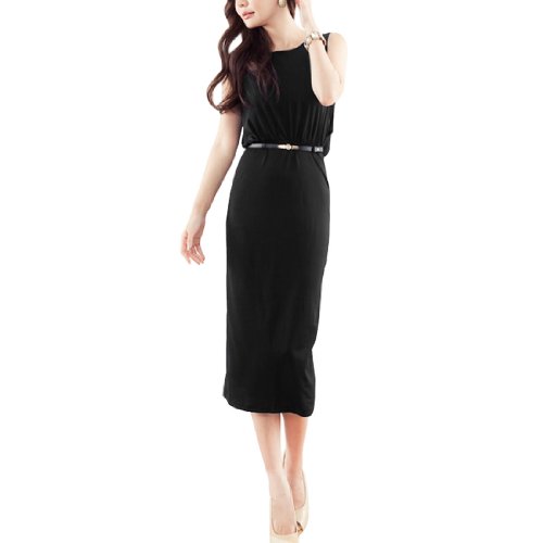 Allegra K Ladies Split Back Sleeveless Elastic Waist Mid-Calf Length Dress Black Xs