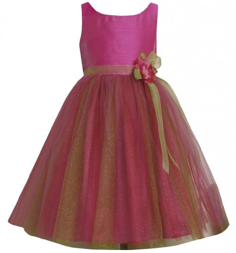 Bonnie Jean Little Girls 4-6X Fuchsia-Pink and Green Glitter Tulle Shantung Dress