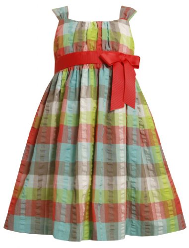 Bonnie Jean Little Girls 4-6X Multicolor Side Bow Plaid Seersucker