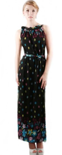Women's Sleeveless Black Long Maxi Dress with Floral Print, More