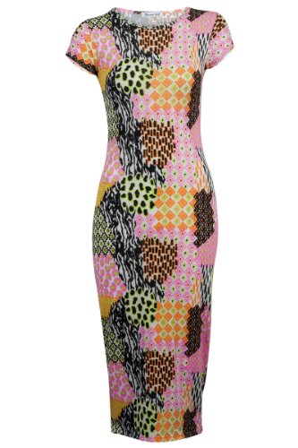 82K Womens Printed Ladies Short Sleeved Bodycon Midi Summer Dress
