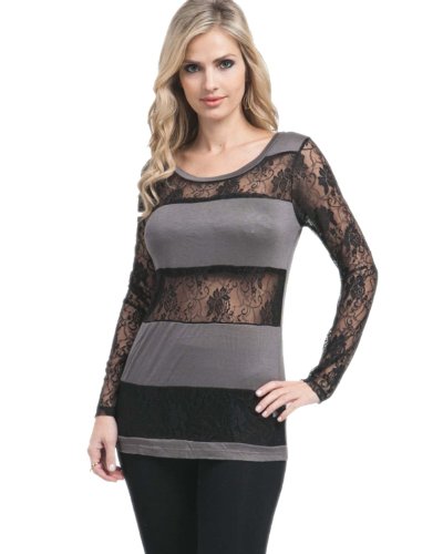 G2 Chic Women's Lace Striped Lace Tunic
