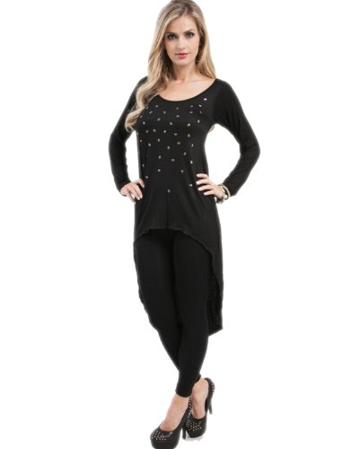 G2 Chic Women's Metal Skull Stud Solid Tunic