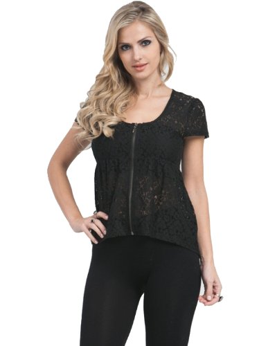 G2 Chic Women's Zip Up Lace Smocked Top
