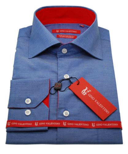 Gino Valentino Mens Dress Shirt GiftBox 2-ply Cotton Spread Collar Barrel Cuff