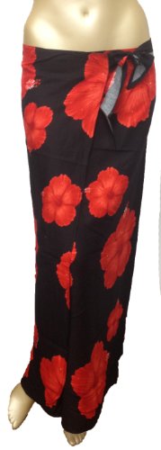 Womens Hawaiian Flower Sarong Wrap in Black & Red