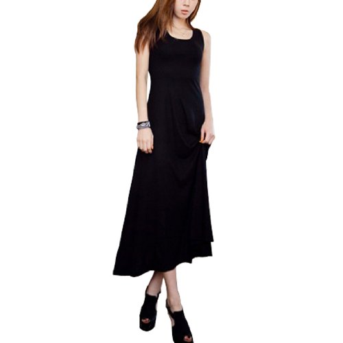 Allegra K Women Summer Scoop Neck Sleeveless Long Mid Calf Dress Black XS