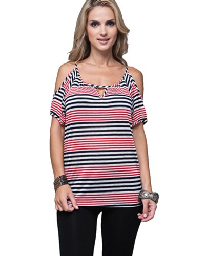 G2 Chic Women's Striped Keyhole Front Open Shoulder Top