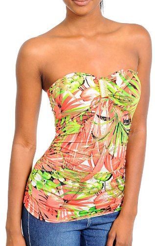 Sexy Hawaiian Pink Green Metallic Gold Sweetheart Strapless Tube Top SML