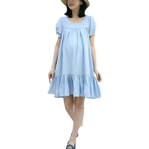 Allegra K Maternity Woman Short Sleeve Square Neckline Dress Baby Blue L