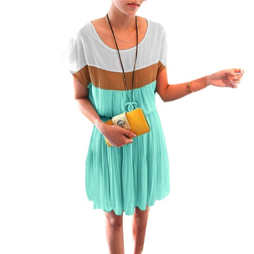 Allegra K Lady Short Sleeve Scoop Neck Semi Sheer Striped Upper Elastic Waist Light Green Dress XS $11.75 Show only Allegra K items