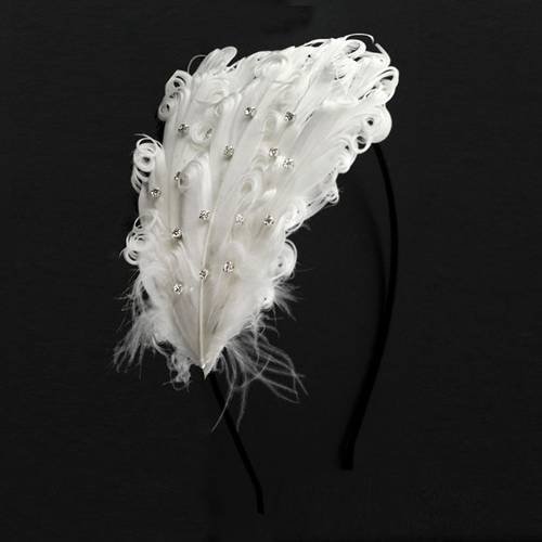 Crystalmood White Curly Feather Bridal Hairband Adjustable Removable