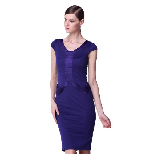 Miusol Womens New Fashion V-neck Cap Sleeves Office Dress