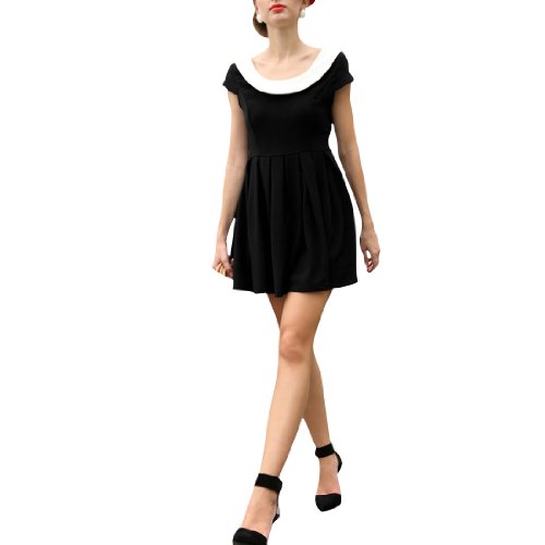 Allegra K Ladies Doll Collar Cap Sleeves Pullover Stretchy Empire Dress Black XS