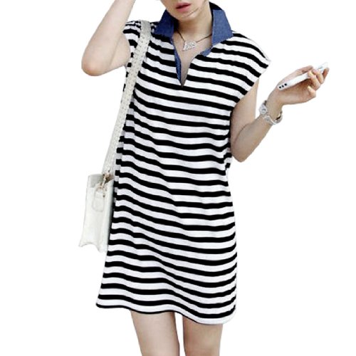 Allegra K Ladies Point Collar Short Sleeve Stripes Casual Mini Dress Black White S $10.87 Show only Allegra K items