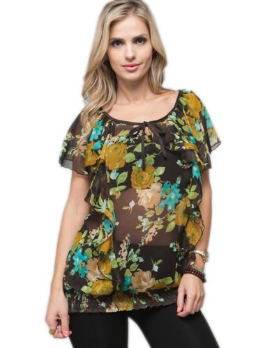 G2 Chic Women's Tie Front Ruffled Floral Top