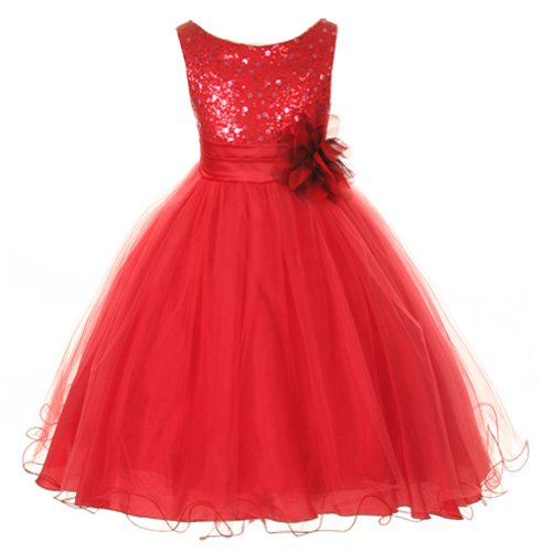 Kids Dream Red Sequin Double Mesh Flower Girl Dress Little