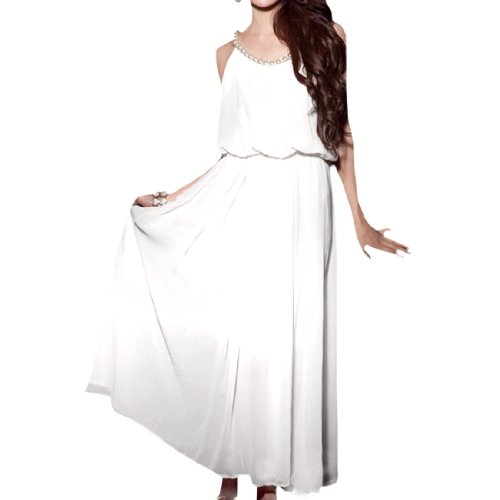 Allegra K Full Length Plastic Pearl Detail Chiffon Cocktail Party Dress for Ladies White S