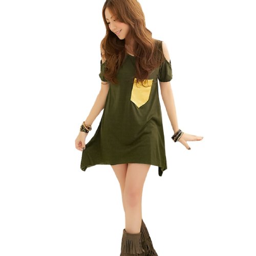 Allegra K Ladies Scoop Neck One Pockets Front Summer Dress Olive Green XS $10.82 Show only Allegra K items