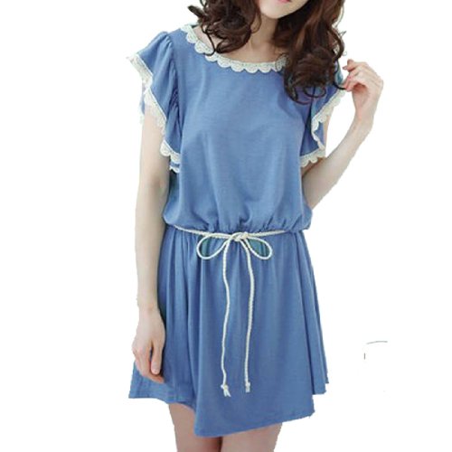 Allegra K Women Scoop Neck Cap Sleeve White Scalloped Hem Cornflower Blue Dress XS