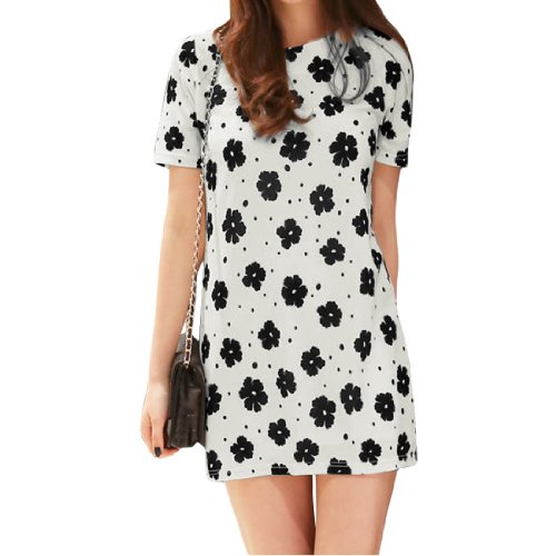 Ekberg Lady Round Neck Short Sleeve Flower Dot Pattern Slim Fit Dress