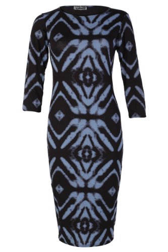 My1stWish Womens 90B Black Printed Ladies 3/4 Length Sleeve Bodycon Midi Dress