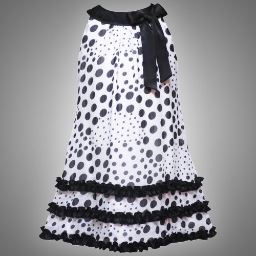 Rare Editions GIRLS 2T-6X BLACK WHITE SCATTERED DOT BOW SHOULDER TRAPEZE CHIFFON Special Occasion Flower Girl...