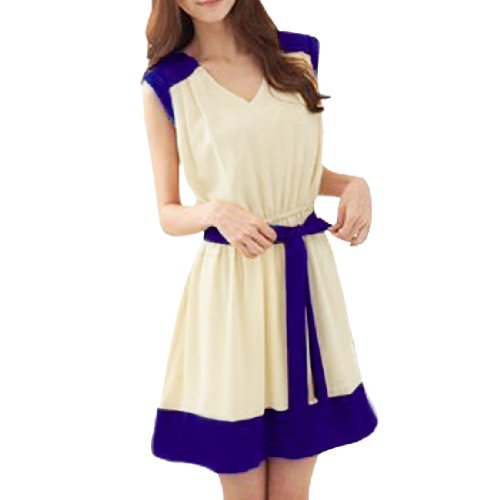 Allegra K Woman V Neck Elastic Waist Above Knee Dress Beige Blue M