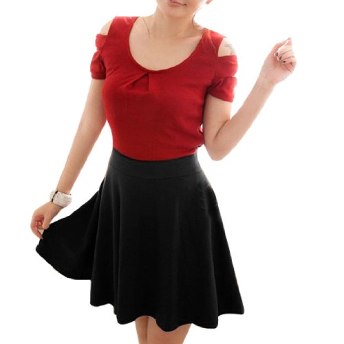 Allegra K Women Cut Out Shoulder Scoop Neck Elastic Waist Pullover Dress Black Red XS