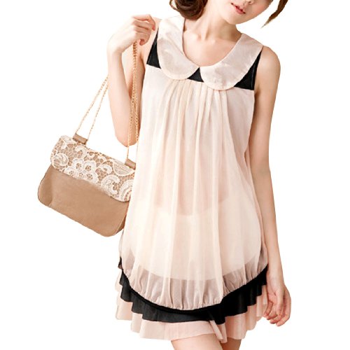 Ekberg Ladies Doll Collar Lined Patchwork Summer Chiffon Mini Dress