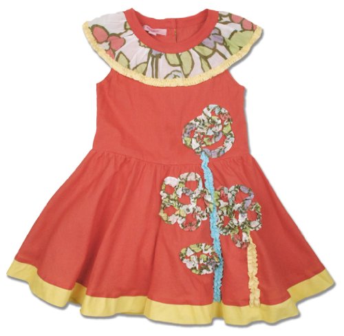 Fashion Print Layer Neck Beetlejuice Red Toddler/Girls Dress W/Pretty Floral Detail-Sizes 2T-8