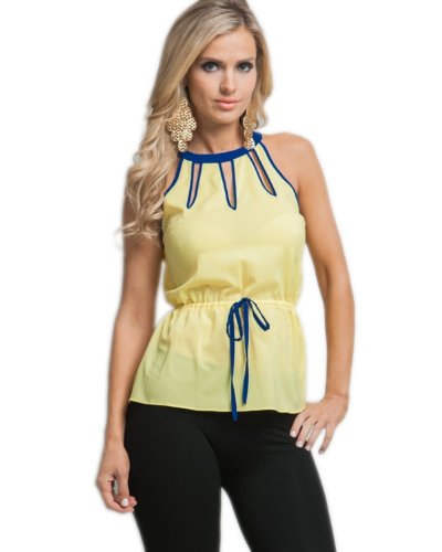 G2 Chic Women's Color Block Trim Knot Back Top