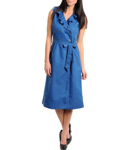 G2 Fashion Square Women's Double Breasted Tie Sash Ruffle Dress
