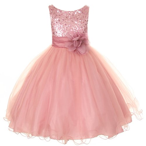 Kids Dream Rose Sequin Double Mesh Flower Girl Dress Little Girl 2T-14