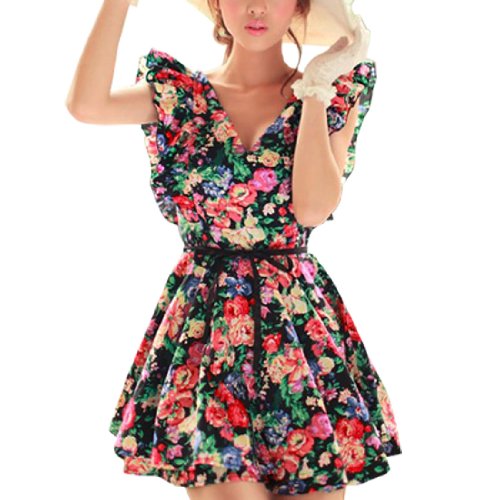 Allegra K Ladies Flutter Sleeves Flower Pattern Deep V Neck Dress Colorful $14.62 (1) Show only Allegra K items