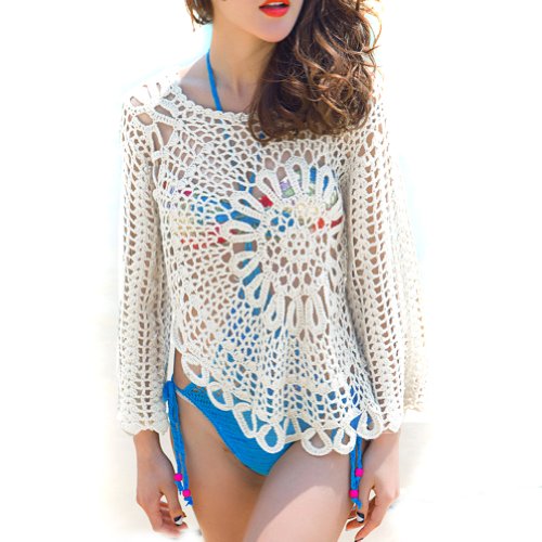 Autofor Handmade Sexy Women Free Size Sheer Lace Knit Crochet shawl Beach Cover Up Dress Blouse Top Beach Poncho...