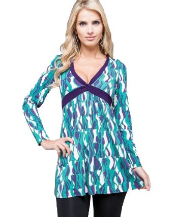 G2 Chic Women's Abstract Printed Empire Waist Long Sleeve Tunic