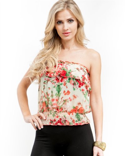 G2 Chic Women's Floral Smocked Tube Top